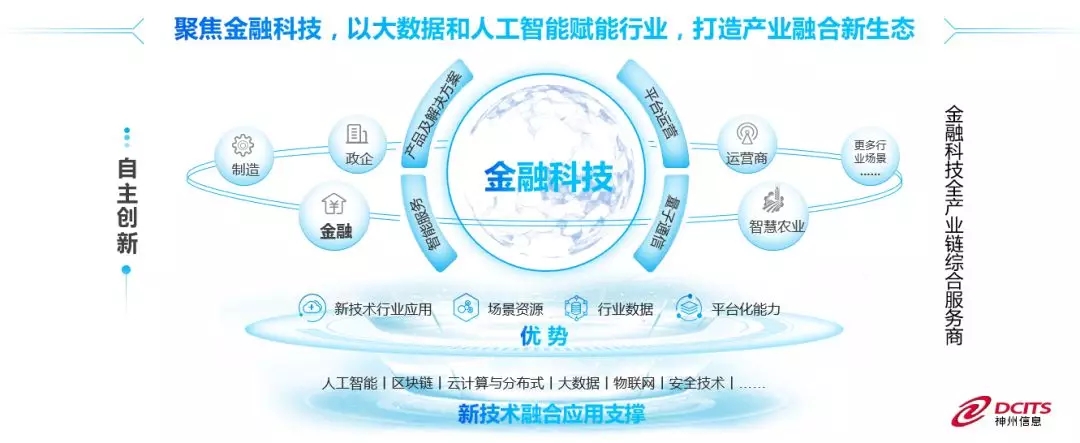 神州信息于2018年进一步战略调整,聚焦金融科技,以人工智能、区块链、云计算、分布式、大数据、物联网、以及量子通信等新兴技术的应用,驱动软件及服务产品智能化迭代,助力金融机构安全合规地推进基础架构转型及业务创新;融合金融、政企、运营商、农业等行业数据及场景资源,创新金融场景,打造新的服务平台并提供运营服务,赋能金融行业数字化转型,打造产业融合新生态。